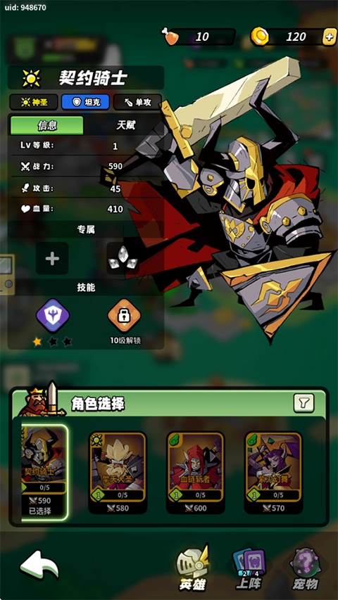 契约骑士(T0级),能扛能打,30级解锁眩晕。(新人可以白嫖10级,详情资源篇会出。)