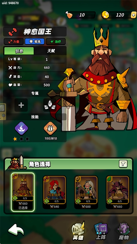 3、国王(首冲获得):前期小核心有就带。