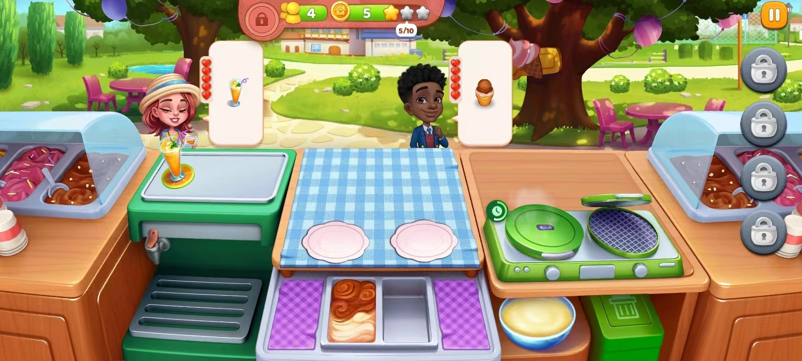 4、接下来会进入巧克力冰淇淋的制作教程,教程结束以后就要自己操作啦!快为客人制作出他们想要的食物吧~