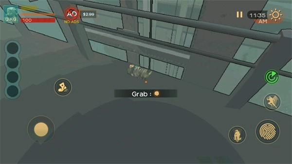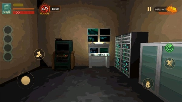 3、正式开始后左边控制移动,右边分别是雷达、跳跃、蹲下按键,滑动屏幕可以转动视角。