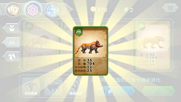 注意:进化需要消耗三张卡牌,能力增长的性价比不高,不适合前期使用,绿色蓝色的卡牌不建议使用进化,到后期为紫色卡牌进化突破紫卡的能力上限。