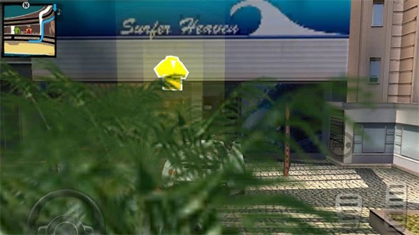 在这里小编给玩家一条参考路线,第一个十字路口右转,要注意红圈标出的两个人,不能在他们身边经过不然铁定要被拖下车浪费时间的。