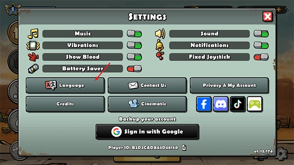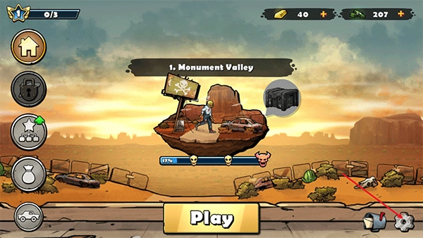 1、进入战车撞僵尸地牢游戏后点击右下角的齿轮,进入设置界面;