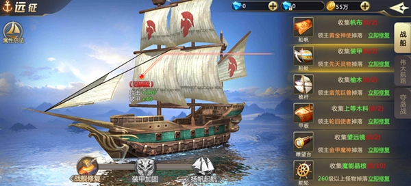 在伟大航路中获得的战船装备可以大幅增加玩家战力,同时战船可穿戴装备。
