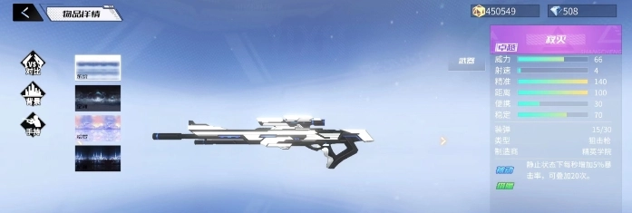这把武器强在他的技能,当玩家携带这把武器处于静止状态时,可以持续叠加暴击率。在这个buff的加持下,远距离狙击造成的子弹伤害衰减会明显降低。