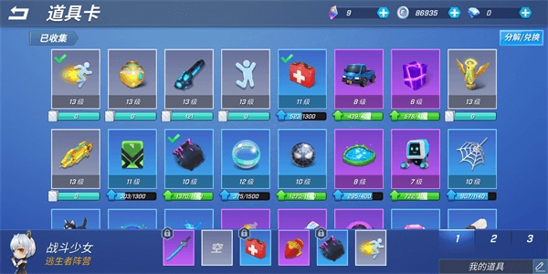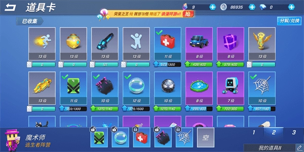 主界面“开始游戏”按钮庞有一个“道具卡”按钮,点击会进入道具卡的整理界面。