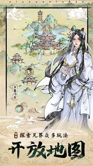 游戏拥有一个广阔的沙盘地图,道友可控制角色在地图中任意移动。地图中,有林立在凡界的各大宗门,当道友达到一定境界后,可选择心仪的宗门加入;有各种闲闻琐事,道友可倾听诸多修真界人士的爱恨情仇,替他们完成任务获取奖励;有各种游历事件,可结交道侣,完成挑战获取奖励。