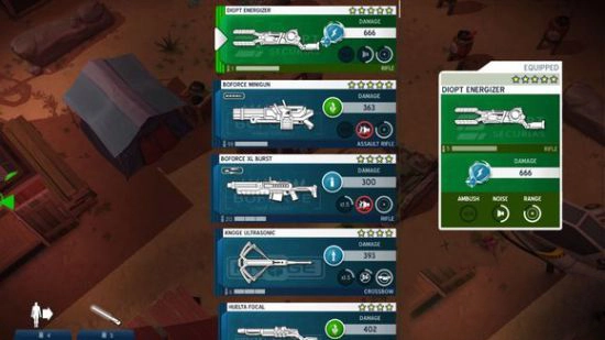 选择装配是战术的关键部分。除了护身服和手榴弹,你还可以带一个双手武器和一个单手武器 — 每个人都能选到合适的武器。散弹枪、手枪、突击步枪、狙击步枪、十字弓、能量武器、飞斧等。