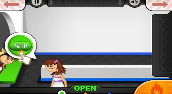 1、首先安装好中文版本的老爹汉堡店,然后进入到游戏当中第一天开业见到客人就接单。