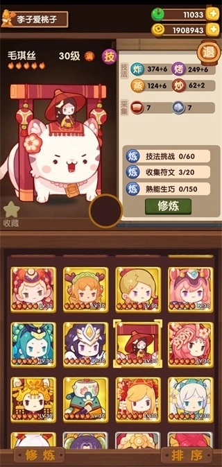 采集点数不够可以升阶厨子,装备相应厨具,需要一定金币与符文,符文包可大大缩短时间(氪金大佬随意)