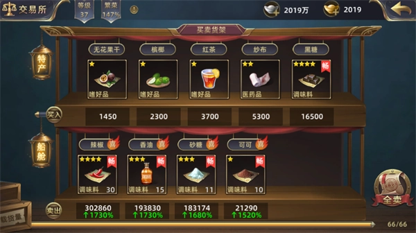 所以,为了有更高的利润,满足上述几个点,购买高星货物,针对港口的喜好品、每天的畅销品,并且尽量跑远距离的贸易,收益将会达到最大值!