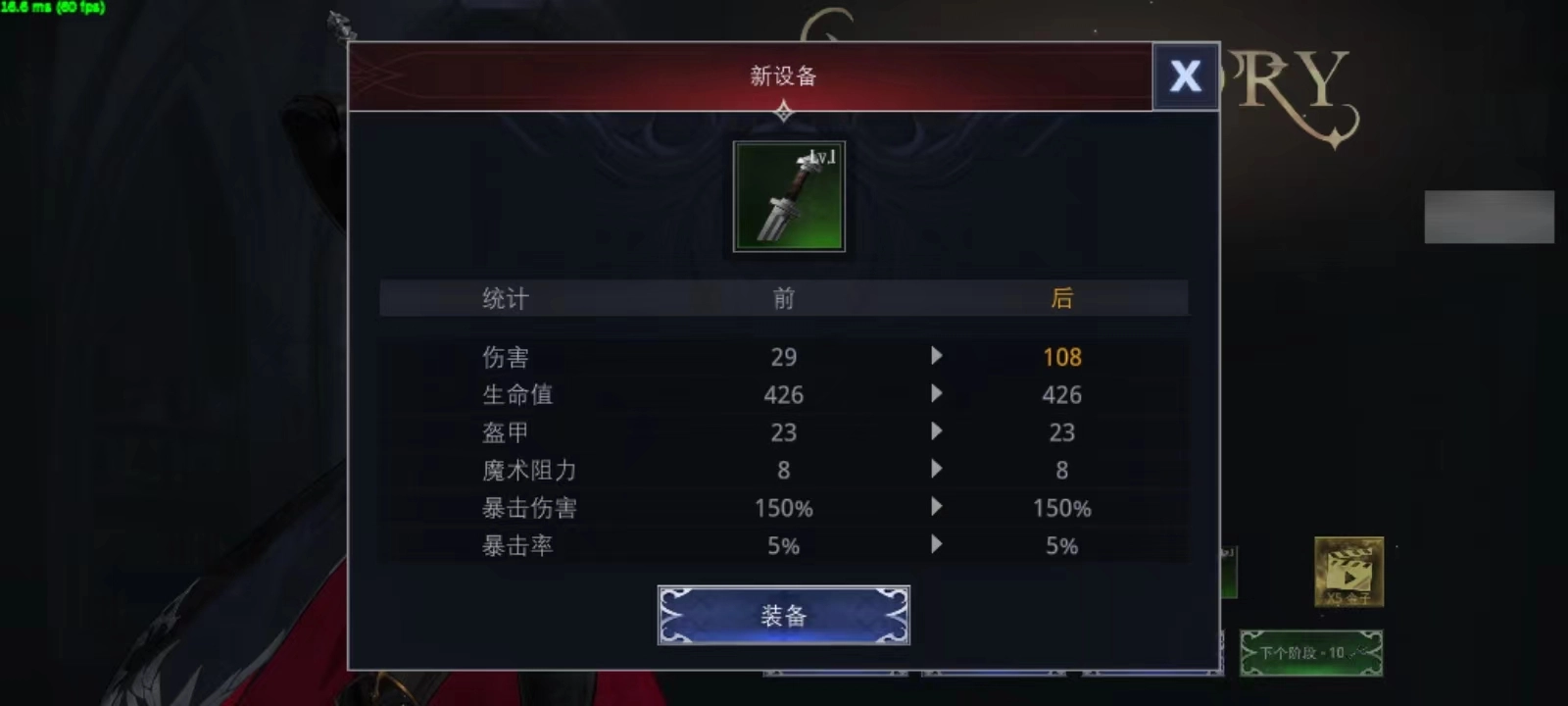 3、通过这段教程以后,可以获得新设备,玩家可以进行【装备】;
