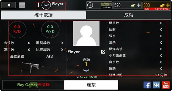 5、点击主界面上方Player即可看到自己的战绩;