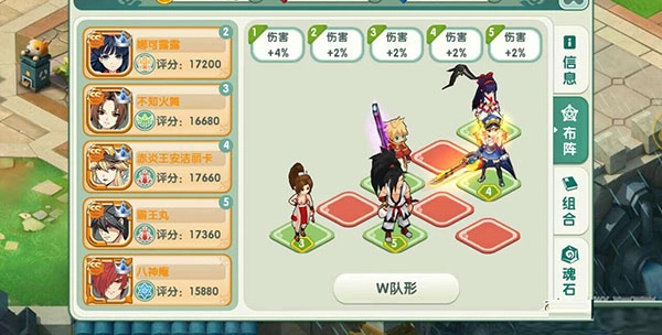 我的伙伴阵容如下图,阵法用的是加伤害的,当然也是竞技场首选阵法,为了防止剑士怒击一片。