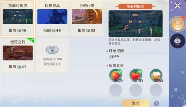 一开始,我们只有三个订单,但随着环境度的提升,我们可以解锁新的订单,更快地获取仙府物资。