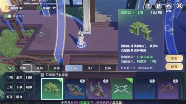 这些家具、家饰,需要我们自己去制作,等级越高,相应所增加的仙府的豪华度、环境度也越高。除开低等级的家具、家饰可以直接铜钱购买以外,高等级的则需要消耗“仙府物资”获取。