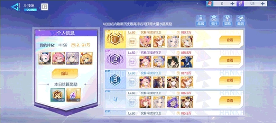 竞技场在作战界面的竞技区域内,在竞技场内玩家可以选择和别的玩家进行对战,每击败一名玩家都可以把你的排名和他的排名置换,非常有趣又刺激,玩家的排名越高,获得的的奖励就越丰富,每击败一个玩家都可以获得声望,声望可以在声望商店购买战姬碎片,是非常适合缺厉害战姬的玩家们的玩法哦。