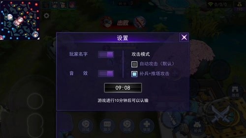 2、我们点击左上角英雄信息下面的设置按钮,将攻击模式调成补兵+推塔攻击模式。