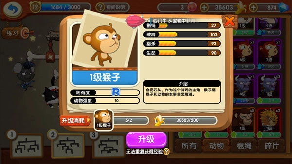 会扔石头。作为这个游戏的主角,猴子砸棍子和动物的本事非常精湛。