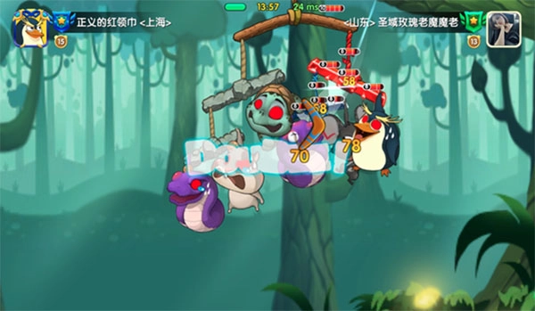 游戏是以小动物们为操纵对象,只需要轻轻拖动你的手指,将小动物手中的武器狠狠的砸出去,把敌方动物击落即可获得胜利,说起来容易,不过每种动物都有自己独有的武器特性,不掌握这些可是无法轻松获得胜利的,动物们各司其职,有的血很厚就适合放在前排当坦克;有的擅长攻击敌方后排脆皮;有的擅长打落敌方棍绳,不仅考验玩家的组合能力,也更依赖玩家对当时形势的判断,采取最合适的战术行动