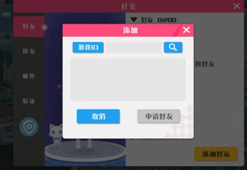 想要成为好友的对象不在面前?没有关系!点击主界面右下社交按钮,选择好友标签,点击右下的添加好友按钮,选择搜索游戏昵称或id,搜索成功后点击添加即可发送好友请求。
