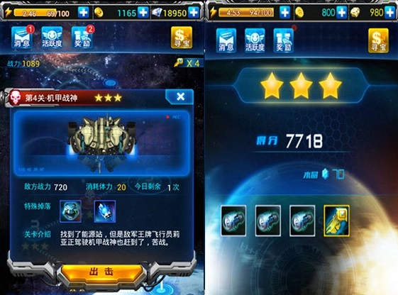2、装备组装玩法,变身雷霆战神,操控机器人激战太空。