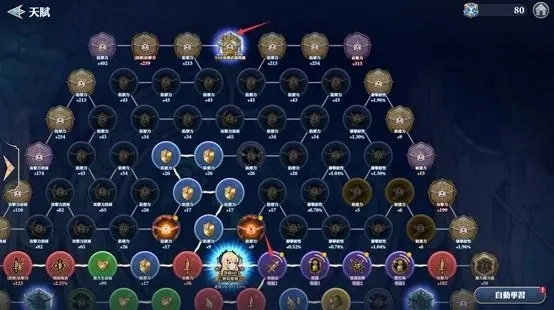 选择天赋加点顺序时,建议优先点满紫色的技能型天赋。