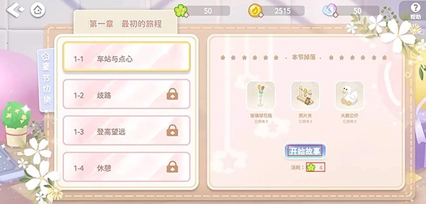 4、游戏内有着各种剧情关卡,玩家可以点击消耗4个小绿花开始故事阅读。
