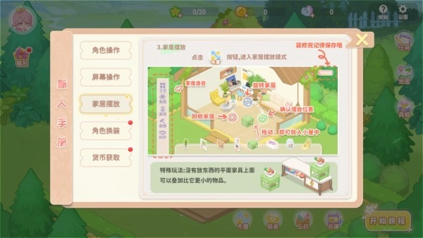 3、手册还给予了玩家详细的家居摆放操作方式教学。