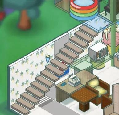 玩家进入游戏之后把板子在屋里转向成对外的方向,然后点击,用箭头强行移出去;向右外扩直接点击板子,再点↘就行了,向左外扩需要先点转向,再点↙即可。