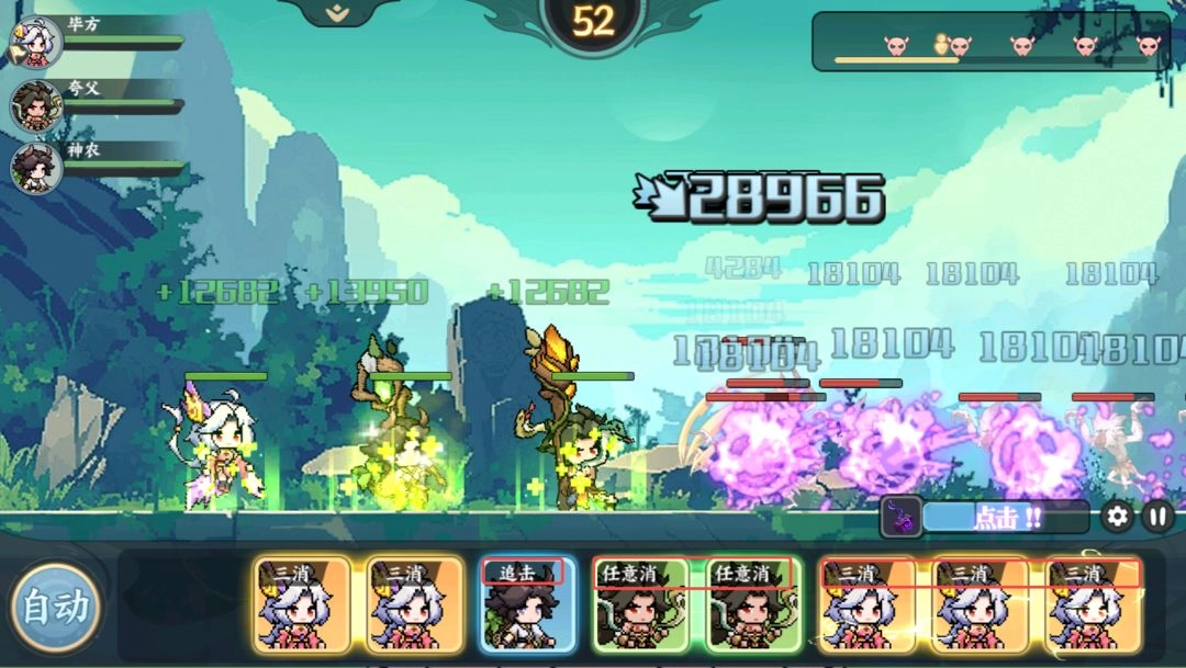 大家只需要按照消除类型进行合理地搭配组合,进战斗后打开自动战斗,然后欣赏爽快的战斗过程就可以啦!