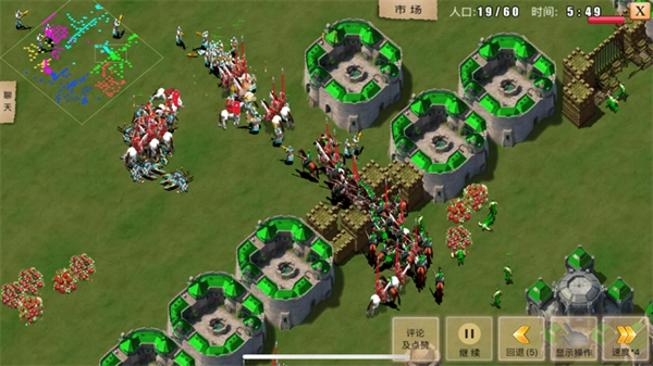 高端局的消耗战,先出大炮和肉盾兵种去对手对垒(没错,不打也不退),然后农民在前线建城墙和城堡,一点点地蚕食土地,最后磨掉对手基地。克制方法是偷他家(好像也没别的办法了)