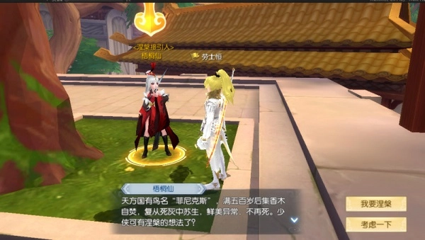 天方国有鸟名“菲尼克斯”,满五百岁后集香木自焚,复从死灰中苏生。当客官修习到150级,且经验值全满之时,将接到来自“梧桐仙”的指引,探索涅槃重生的奥义。