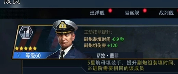 而突击者副炮组最理想就是用全五星副炮组,有条件的可以用海浪;至于成员,对于突击者来说拥有了五星舰长、机械师和装填手,其他成员全配四星就够用了。如果条件允许,并且只打无尽的情况下,你可以把航空通讯员换成五星航空战役通讯员,可以把武器工作人员换成五星武器战役工作人员,甚至全换成五星成员和五星技能成员。