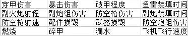 首先:配件系统一共有4个,分别是水密舱,装甲带,火控塔和飞剪艏。四个配件作用各有不同,水密舱和装甲带以防御为主,火控塔和飞剪艏以进攻为主。下面分别附上四个技能的列表如下: