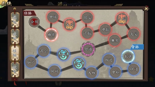 经脉由诸多穴位组成,打通穴位能大大的增强你实力,主要依靠人参、蛤蟆油、雪莲、龙涎香、龙骨等材料解锁打通。