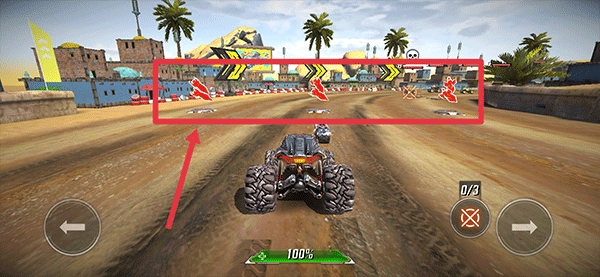 3、在赛道行驶过程中,会随机出现火箭和助推器能量,玩家需精准操控汽车获取,以便为后续的战斗及加速做好准备。