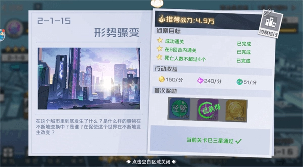 接着开始我们的侦察任务,也就是主线任务,收集大量的经验、灵气与金币,灵气与金币,可是升级探员必不可少的材料哦。通关数量与收集对应的星星,可以获得丰厚的奖励。