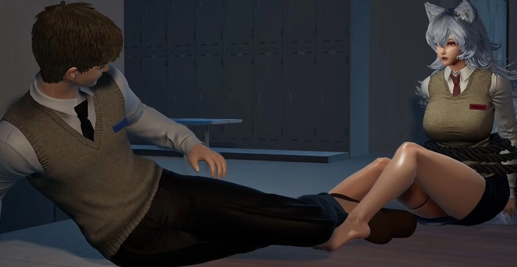 打开了美术室的秘密通道,嘈杂的音乐吸引来了芙蕾雅,男主被迫当了芙蕾雅的模特