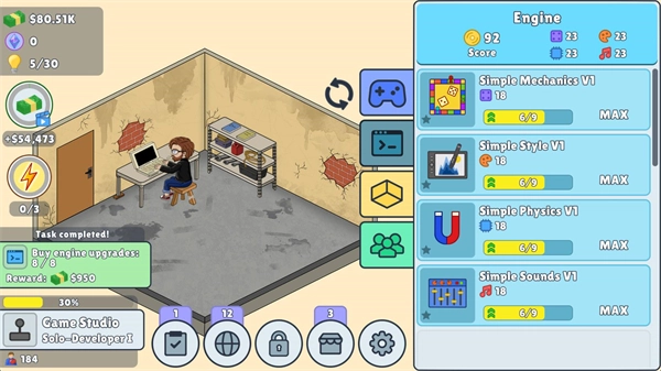 5、获得收益后点击右侧的第二个按钮可以对你的引擎进行升级,可以让你开发出更好的游戏。