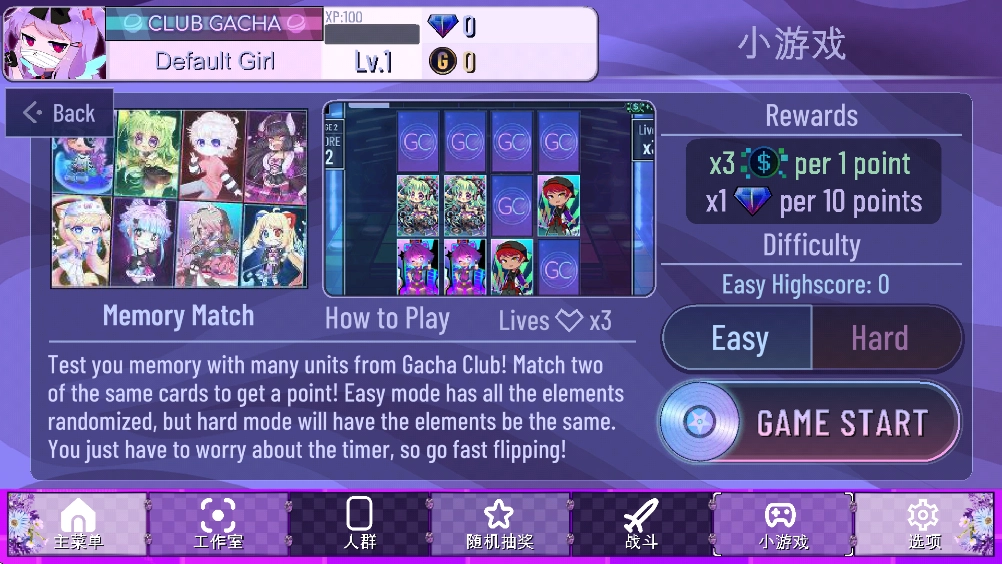 Easy难度下每1分可获得2倍Bits,每20分可获得一个Gems;Hard难度下每1分可获得1倍Bits,每20分可获得一个Gems。