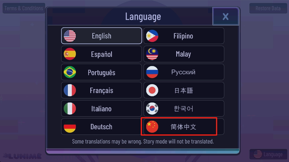 1、打开游戏后,点击语言Language