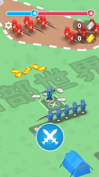 战斗开始后,士兵会自动前进,双方接触后开始交战。战斗会掉落资源,是主要的资源获取途径。此外还有空投可获得资源,但数量和效率都低于战斗。可见,游戏也鼓励玩家多多战斗,而不是“苟着”。
