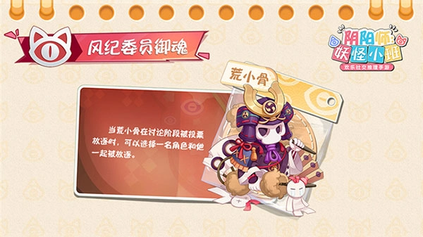 先来说说普通学员阵营吧~拥有“狰”御魂的普通学员在讨论阶段被放逐后,可以选择一名角色和他一起放逐,如果怀疑谁是风纪委员,直接大胆地带走ta,一起快乐做幽灵~虽说有误伤的可能,但万一中了呢!“狰”香定律虽迟但到,家长大人们觉得嘞?