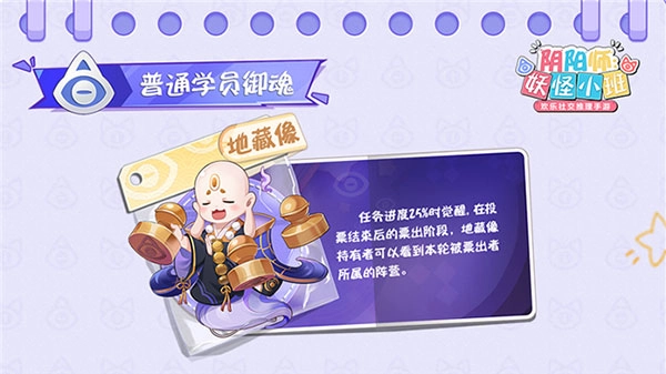 当任务进度达到25%时持有御魂“地藏像”的普通学员觉醒技能,可以看到本轮被票出者的所属阵营。当范围不断缩小,真正的“潜伏者”也将无处躲藏~据说有了“地藏像”助力,不论哪方阵营都能感受心跳加速的体验呢~