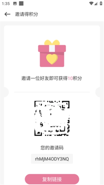 3、通过分享自己的二维码或者是邀请码,新用户下载之后就可以获取积分,每邀请一位好友即可获得10积分。