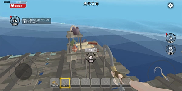 4、拥有工作台可用于制作各种工具,以此来建设海上小屋。