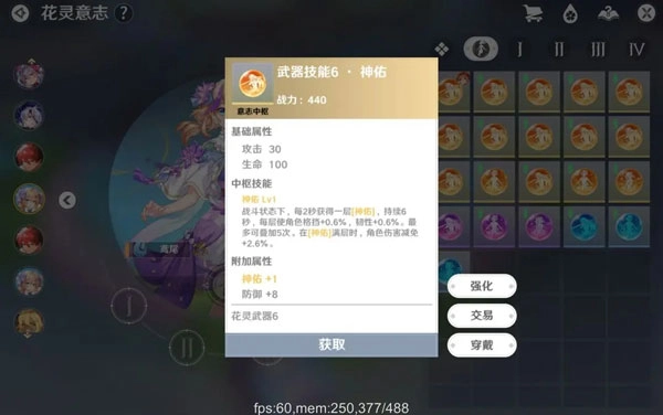 作为偏生存的花灵,鸢尾更适合提高生存的意志。意志中枢推荐选择神佑,进入战斗就能获得随时间叠加的格挡、韧性,还能为角色提供不俗的伤害减免。先觉也是不错的选择,能在角色闪避后提供缓慢的生命回复和击退免疫。