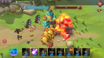 7-7:地精用技能“死亡射击”清掉,它打防御塔太痛了。别着急清对方防御塔,等到第一波boss打掉,用技能“大地崩裂”清除敌方防御塔,然后直接放置“巨炮破塔队”。