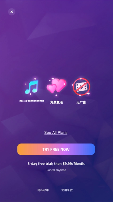 3、点击右上角的解锁所有歌曲就可以进入试玩其它歌曲,试玩后可以进行购买